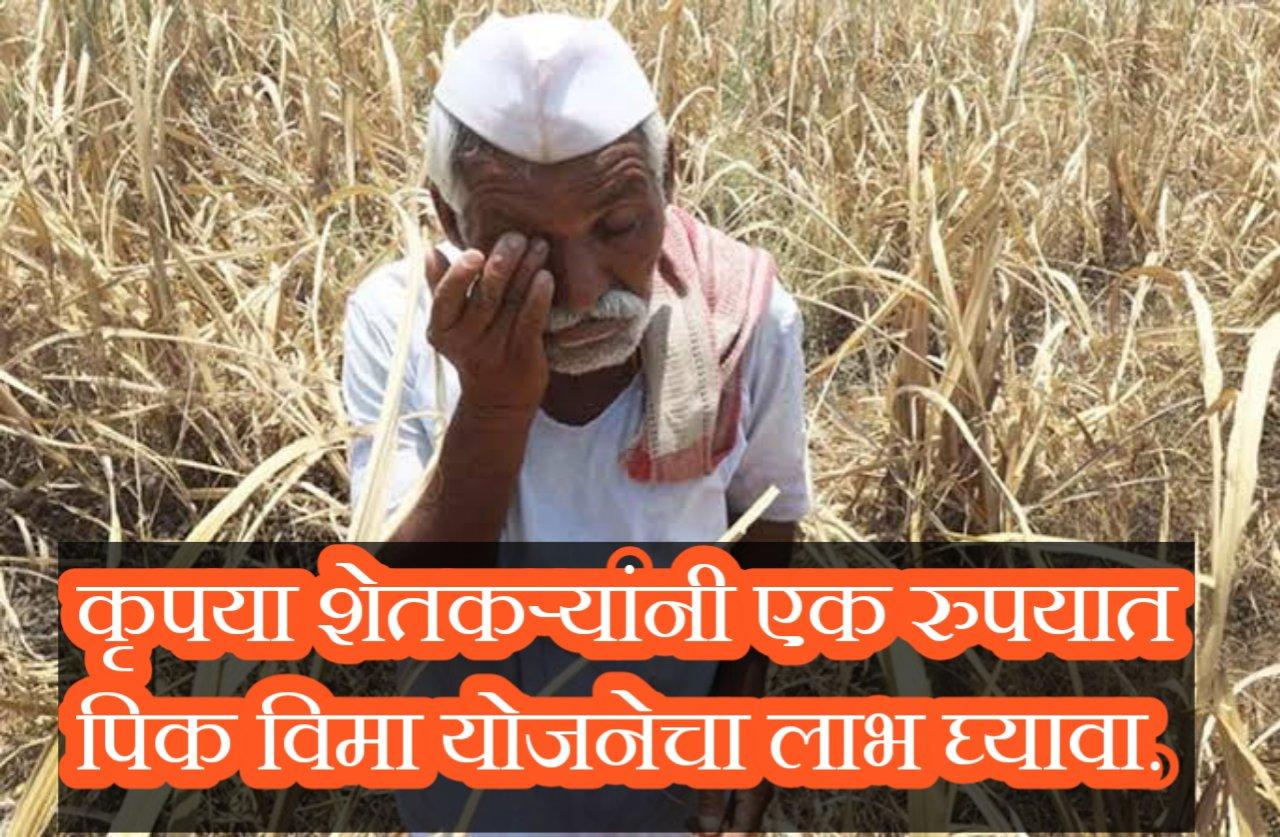 नमस्कार शेतकरी मित्रांनो शेतकऱ्यांसाठी अतिशय महत्त्वाची आणि आनंदाची बातमी आलेली आहे मित्रांनो यापुढे शेतकऱ्यांना (1 rupayat pik vima) फक्त एक रुपये भरून कोणत्याही प्रधानमंत्री पिक विमा योजनेत भाग घेता येणार. पिक विमा भरण्यासाठी शेतकऱ्यांना हजारो रुपये लागतात त्या कारणाने शेतकरी पिक विमा भरत नाहीत, पिक विमा भरण्यासाठी शेतकऱ्यांना फक्त 2% टक्के रक्कम भरावी लागते तरीही शेतकरी ती रक्कम भरू शकत नाहीत या कारणाने शेतकरी मित्रांनो आता शिंदे आणि फडणवीस सरकारने योजना आणली आहे “1 रूपयात पिक विमा योजना”  (1 rupayat pik vima) म्हणजेच फक्त 1 रुपये एवढाच खर्च ठेवला आहे. अर्थमंत्री देवेंद्र फडणवीस यांनी अशी घोषणा केली आहे याची उर्वरित रक्कम आता राज्य सरकार भरणार मित्रांनो यासाठी 3312 कोटी रुपयांची तरतूद करण्यात येणार असल्याचे त्यावेळी सांगितलं, यामुळे शेतकऱ्यांचा नक्कीच फायदा होईल आणि शेतकऱ्यांचे हजारो रुपये वाचतील.