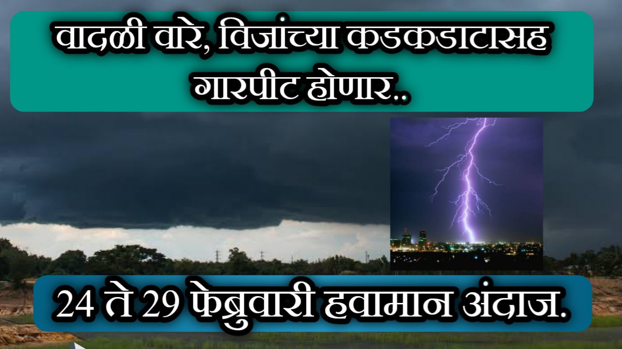 हवामान विभागाचे निवृत्त शास्त्रज्ञ माणिकराव खुळे यांनी दिलेल्या माहितीनुसार, २५ फेब्रुवारी ते २७ फेब्रुवारी (रविवार ते मंगळवार) या काळात जालना, नांदेड, परभणी आणि हिंगोली या जिल्ह्यांमध्ये ढगाळ वातावरण राहून तुरळक ठिकाणीच गडगडाटीसह किरकोळ पावसाची शक्यता आहे.