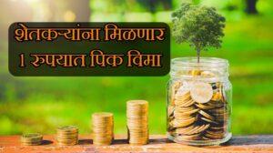 नमस्कार शेतकरी मित्रांनो शेतकऱ्यांसाठी अतिशय महत्त्वाची आणि आनंदाची बातमी आलेली आहे मित्रांनो यापुढे शेतकऱ्यांना (1 rupayat pik vima) फक्त एक रुपये भरून कोणत्याही