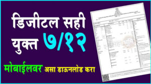 शासनाच्या महाभुलेख वेबसाइटवरून डाऊनलोड करा. महाभुलेख वेबसाइटवर जा: https://bhulekh.mahabhumi.gov.in/.तुमचा जिल्हा आणि तालुका निवडा.जमिनीचा सर्व्हे नंबर टाका.“शोध” बटणावर क्लिक करा.7/12 अर्क प्रदर्शित केला जाईल.तुम्ही