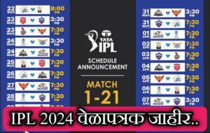 आयपीएल 2024: पहिल्या 21 सामन्यांचे वेळापत्रक जाहीर! | Ipl वेळापत्रक 2024.