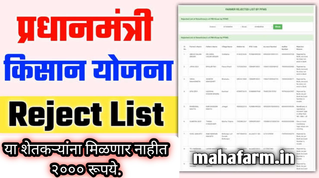 शेतकरी मित्रांनो, तुम्हाला तुमच्या गावातील योजनेस अपात्र असलेल्या शेतकऱ्यांची यादी पाहायची असेल किंवा तुम्हाला पीएम किसान योजनेचे हप्ते मिळत नसतील तर तुमचे अपात्रे यादीत नाव आहे का नाही हे तपासायचे असेल, तर आज आपण अशा अपात्र शेतकऱ्यांची यादी ऑनलाईन पाहणार आहोत.